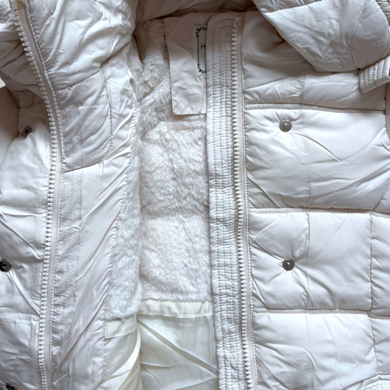 Štýlová dievčenská zimná bunda v elegantnej bielej farbe je ideálnym spojením pohodlia, hrejivosti a dievčenského dizajnu. Vnútro bundy je zateplené mäkkou huňatou podšívkou, ktorá poskytuje maximálny komfort aj počas najchladnejších dní. Praktický opasok zvýrazní pás a dodá bunde moderný vzhľad, zatiaľ čo kapucňa chráni pred vetrom a snehom.