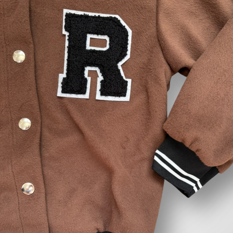 Chlapčenský bomber so zapínaním na cvoky s písmenom R. Viac informácií ohľadne starostlivosti o oblečenie nájdete v záložke PARAMETRE v časti Starostlivosť.