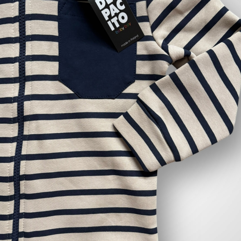 Štýlová detská mikina DESPACITO s pruhovaným vzorom je ideálnym kúskom na každodenné nosenie. Vyrobená z kvalitnej 95% bavlny, poskytuje pohodlie a priedušnosť počas celého dňa. Praktická kapucňa chráni pred chladom, zatiaľ čo zapínanie na zips po celej dĺžke uľahčuje obliekanie.