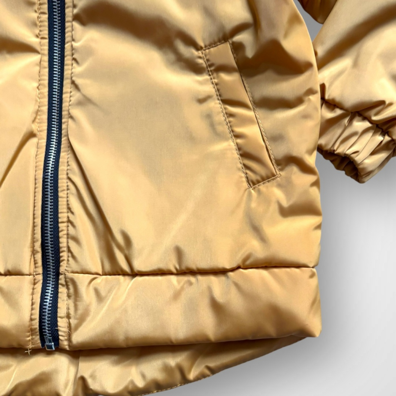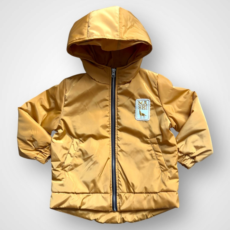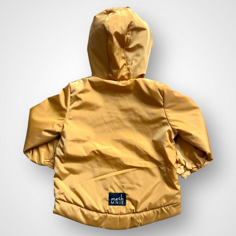 Štýlová chlapčenská bunda z novej jesennej kolekcie mashMNIE v modernej žiariacej žltej farbe je ideálna na jeseň, jar a teplú zimu. Vyrobená z kvalitného, odolného materiálu, ktorý chráni pred vetrom a chladom. Bunda má praktickú kapucňu, zapínanie na zips po celej dĺžke a elastické manžety na rukávoch, ktoré zabezpečujú pohodlné nosenie. Na hrudi je decentná nášivka mashMNIE s ikonickým vlkom.
