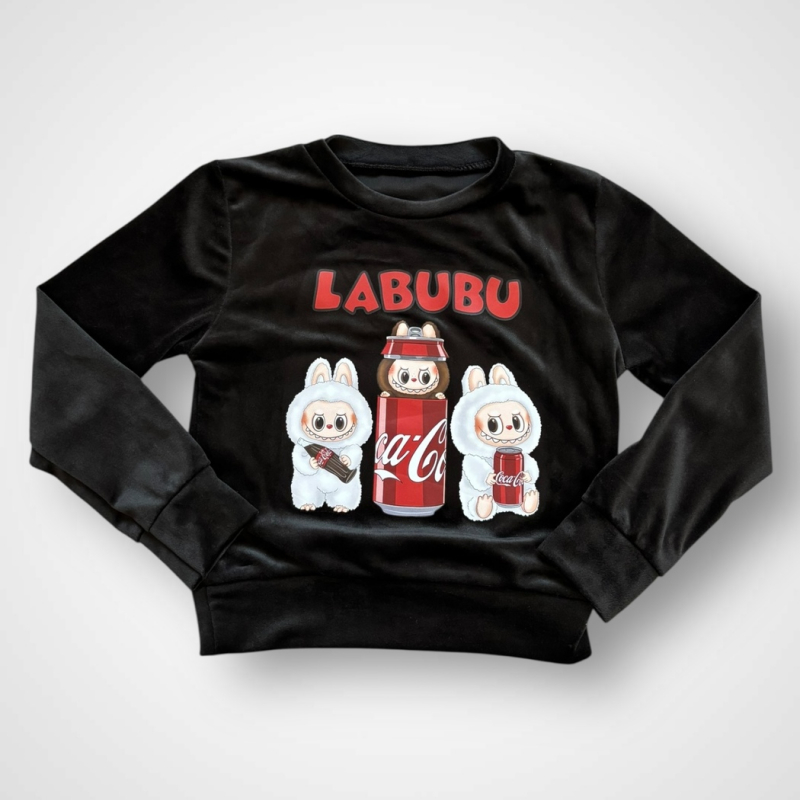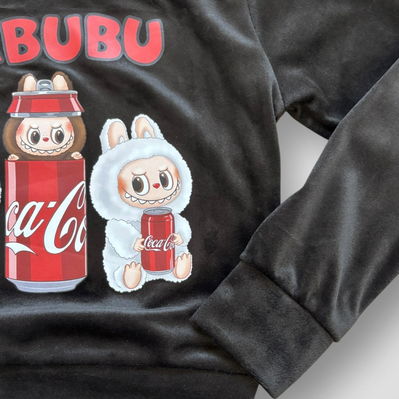 Chlapčenská velúrová súprava mikina a tepláky s potlačou LABUBU. Mikina vpredu s potlačou LABUBU, tepláky s gumou v páse, bočnými vreckami a patentmi. Viac informácií ohľadne starostlivosti o oblečenie nájdete v záložke PARAMETRE v časti Starostlivosť.