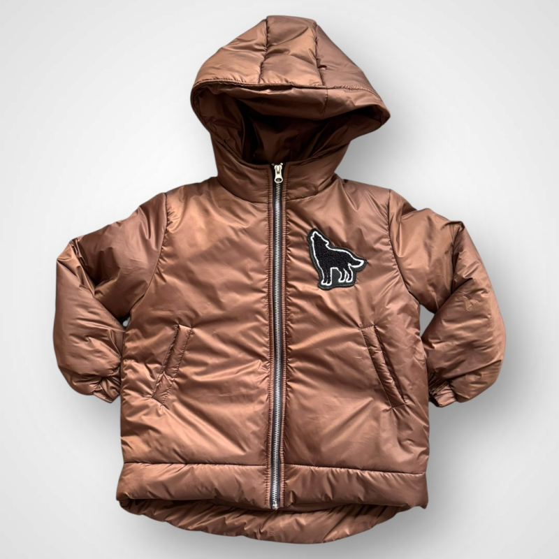 Bunda má praktickú kapucňu, zapínanie na zips po celej dĺžke a predné vrecká na ruky či drobnosti. Na hrudi ju zdobí ikonická nášivka vlka – symbol značky MashMNIE, ktorá je zárukou kvality a originálneho dizajnu.