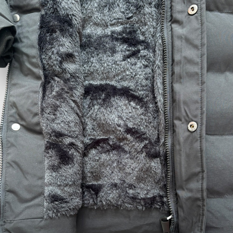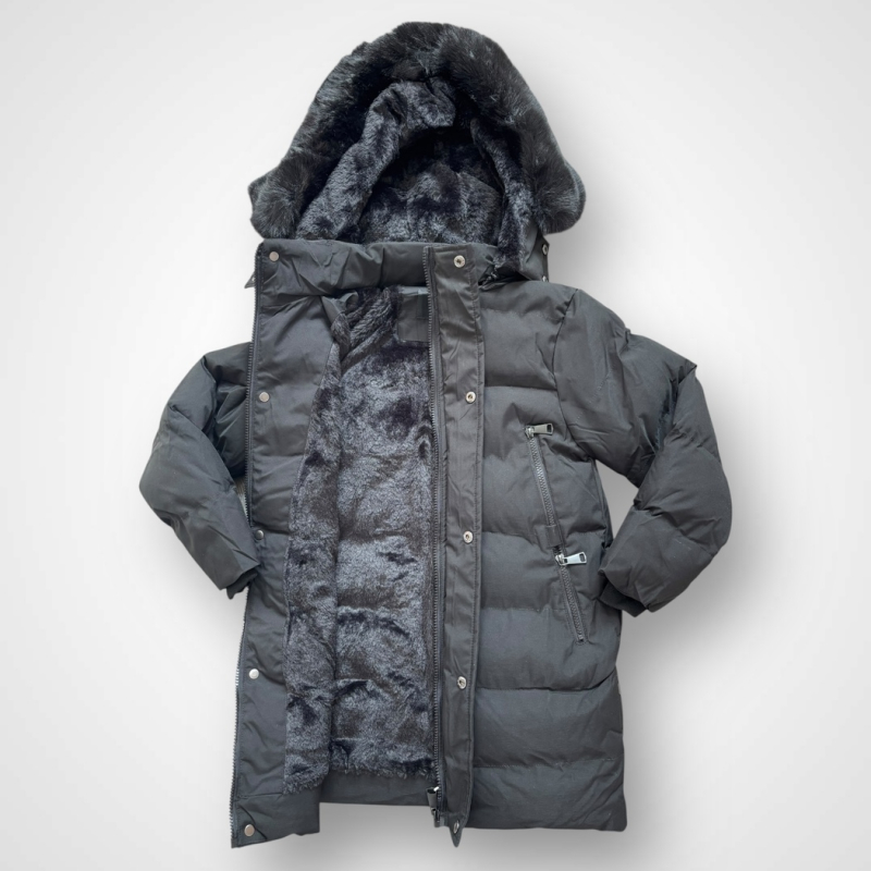Chlapčenská zimná bunda v čiernej farbe je ideálnou voľbou na mrazivé dni. Vyrobená z kvalitného, odolného materiálu so zateplením, ponúka maximálne pohodlie a ochranu pred chladom. Vnútorná podšívka je potiahnutá mäkkou čierno-sivou kožušinou, ktorá príjemne hreje a zvyšuje komfort pri nosení. Praktická odopínateľná kapucňa s bohatou kožušinou dodáva bunde štýlový vzhľad a zároveň chráni pred vetrom a snehom. Bunda je vybavená zapínaním na zips prekrytý patentmi, bočnými zipsovými vreckami a detailným prešívaním, ktoré zaručuje moderný vzhľad.