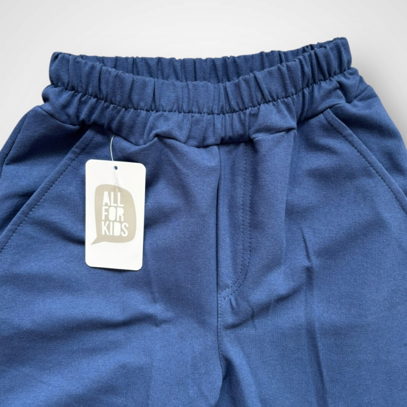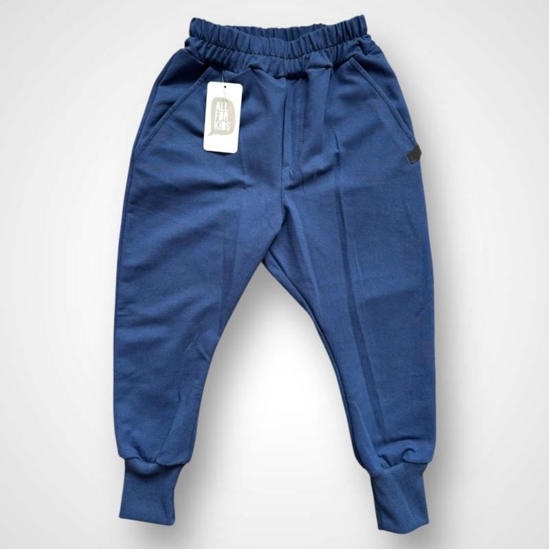 Chlapčenské bavlnené tepláky All For Kids v modernej modrej farbe sú ideálnym kúskom na každodenné nosenie. Vyrobené z príjemnej a kvalitnej bavlnenej teplákoviny, zaručujú pohodlie počas celého dňa. Elastický pás so sťahovaním a pružné patenty na nohaviciach zabezpečia perfektné prispôsobenie. Praktické bočné vrecká dodávajú funkčnosť, zatiaľ čo moderný strih pôsobí štýlovo a športovo.