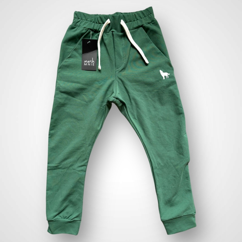 Štýlové chlapčenské tepláky mashMNIE z novej kolekcie v modernom minimalistickom dizajne. Vyrobené z kvalitnej bavlnenej teplákoviny, ktorá je príjemná na dotyk a pohodlná na každodenné nosenie. Elastický pás so šnúrkou umožňuje ideálne prispôsobenie, manžety na spodku nohavíc držia tvar a chránia pred chladom. Na boku je decentné logo značky mashMNIE – vlk, ktorý dodáva nohaviciam jedinečný charakter.