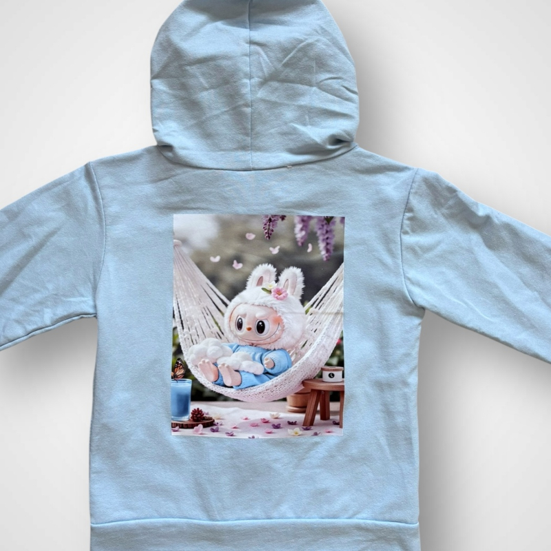 Dievčenská bavlnená mikina na zips s kapucňou, vpredu a na chrbáte s potlačou LABUBU. Viac informácií ohľadne starostlivosti o oblečenie nájdete v záložke PARAMETRE v časti Starostlivosť.