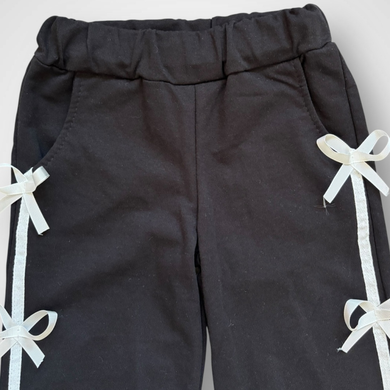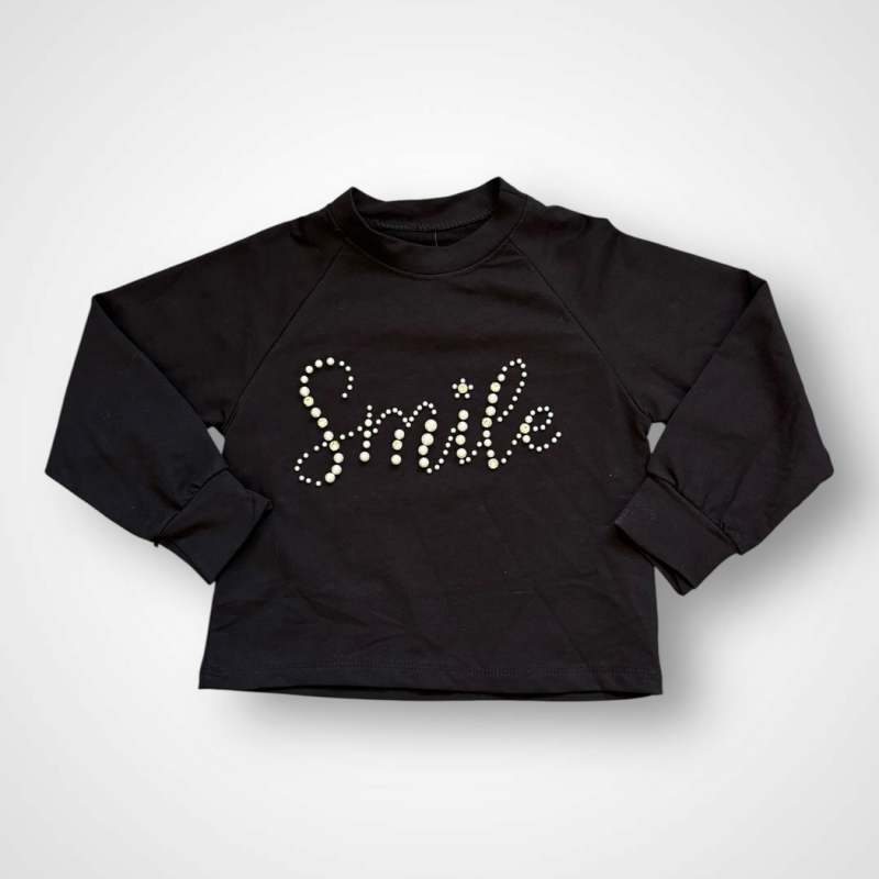 Dievčenská bavlnená súprava mikina a tepláky. Basic mikina s nápisom Smile, ktorý je vytvorený s lesklých a bielych koráliek. Tepláky širokého strihu zdobené mašličkami. Viac informácií ohľadne starostlivosti o oblečenie nájdete v záložke PARAMETRE v časti Starostlivosť.