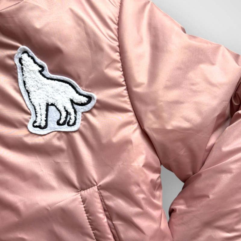 Bunda má praktickú kapucňu, zapínanie na zips po celej dĺžke a predné vrecká na ruky či drobnosti. Na hrudi ju zdobí ikonická nášivka vlka – symbol značky MashMNIE, ktorá je zárukou kvality a originálneho dizajnu.
