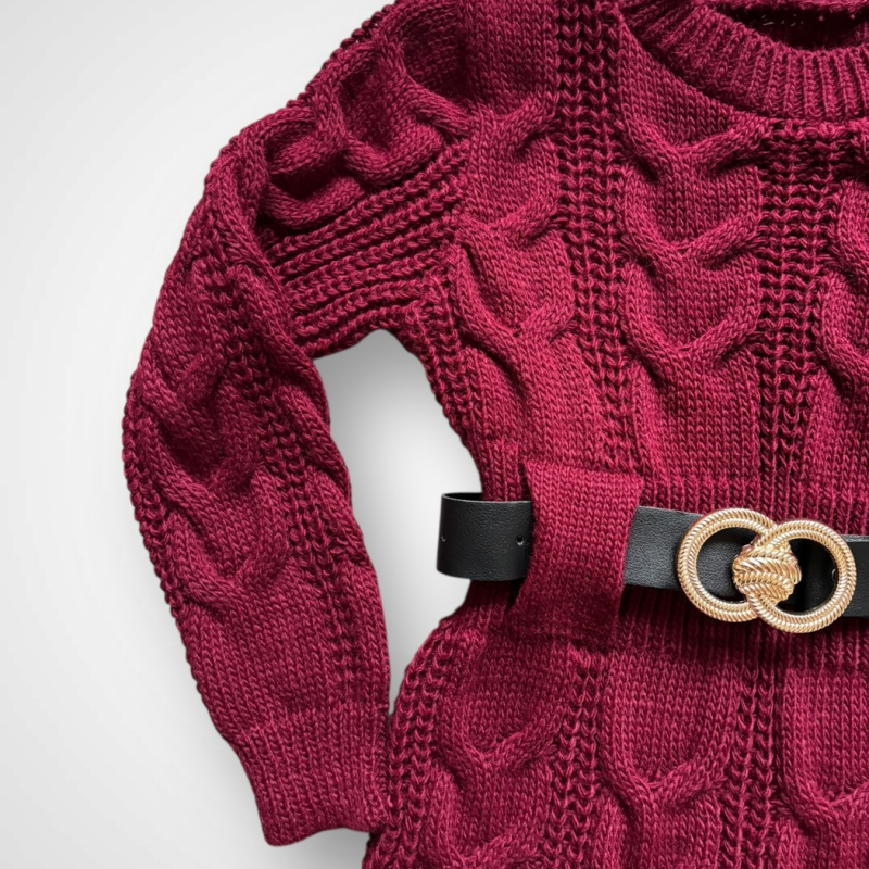 Dievčenské pletené hrubšie šaty s dlhým rukávom doplnené o čierny opasok s prackou. Dostupné v 3 farbách: ružová, červená a bordová. Viac informácií ohľadne starostlivosti o oblečenie nájdete v záložke PARAMETRE v časti Starostlivosť.