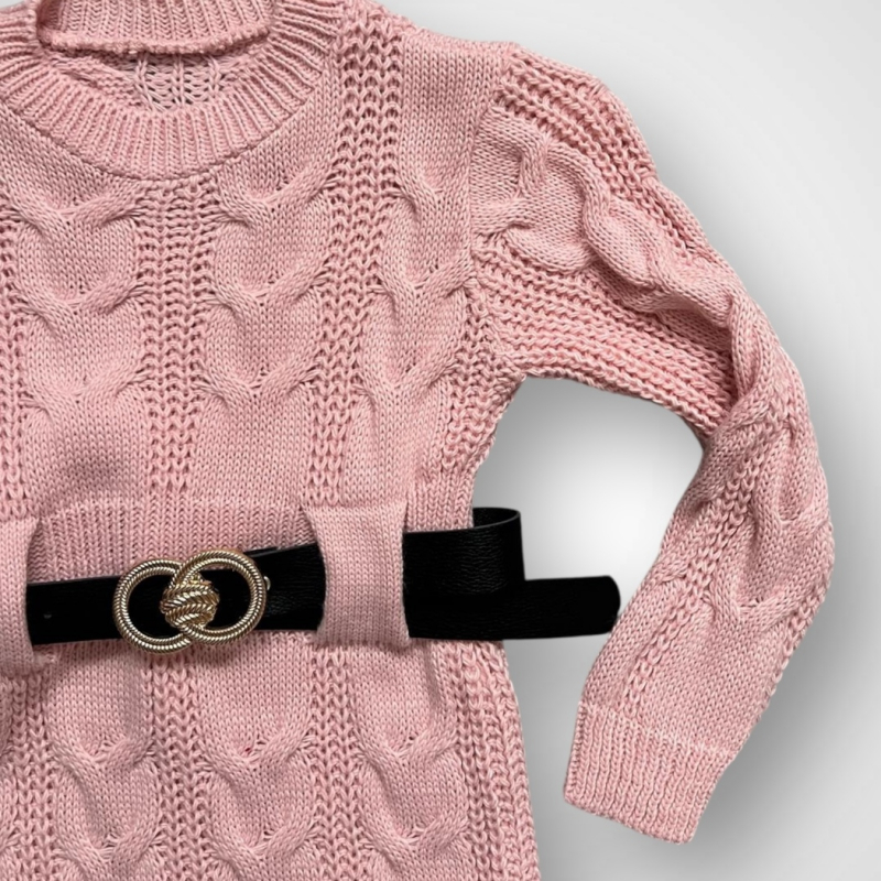 Dievčenské pletené hrubšie šaty s dlhým rukávom doplnené o čierny opasok s prackou. Dostupné v 3 farbách: ružová, červená a bordová. Viac informácií ohľadne starostlivosti o oblečenie nájdete v záložke PARAMETRE v časti Starostlivosť.