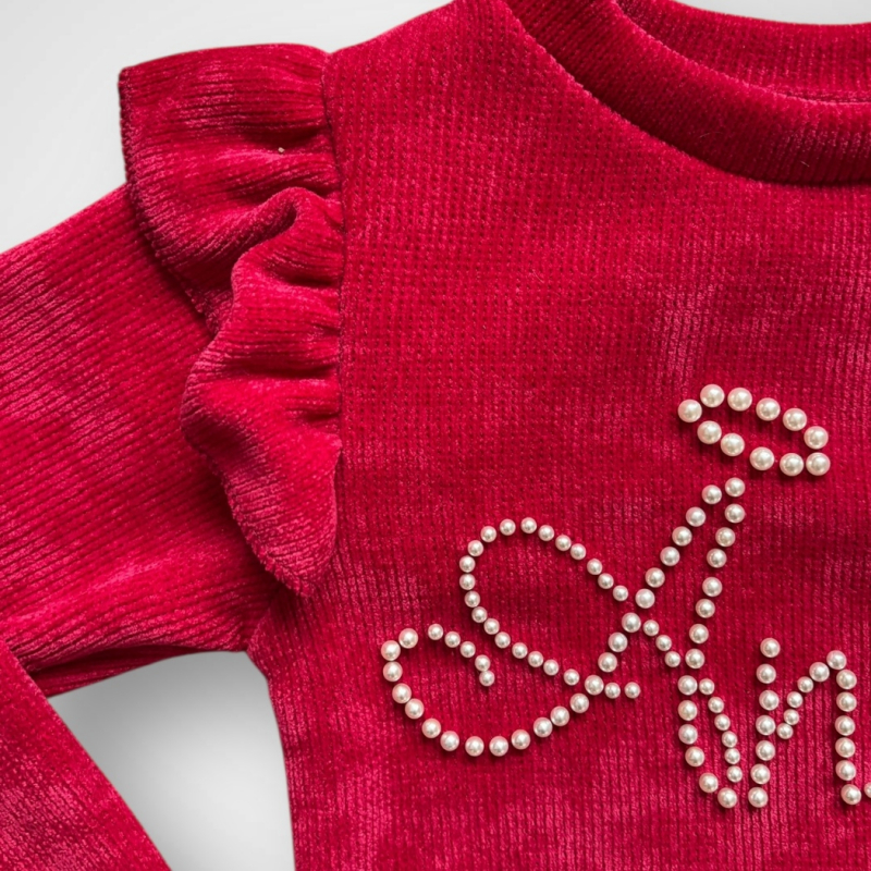 Dievčenské hrubé menčestrové tričko s dlhým rukávom, vpredu s nápisom Angel, ktorý je prevedený z lesklých koráliek. Viac informácií ohľadne starostlivosti o oblečenie nájdete v záložke PARAMETRE v časti Starostlivosť.