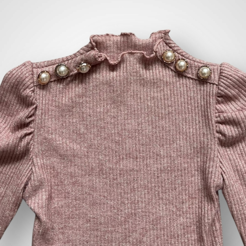 Dievčenské tričko s dlhým rukávom s trblietavým efektom so stojačikom, na ramených zdobené lesklými gombíkmi. Viac informácií ohľadne starostlivosti o oblečenie nájdete v záložke PARAMETRE v časti Starostlivosť.