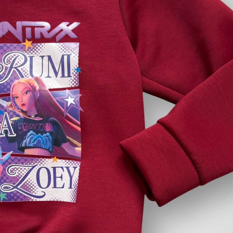 Dievčenská mikina s kapucňou s potlačou HUNTRIX K-POP DEMON HUNTERS. Viac informácií ohľadne starostlivosti o oblečenie nájdete v záložke PARAMETRE v časti Starostlivosť.