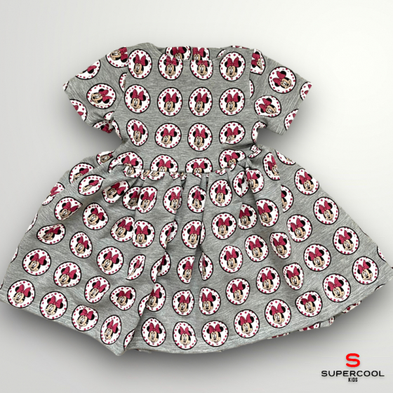 Bavlnené dievčenské šaty s krátkym rukávom s motívom Minnie. Spodná časť šiat je rozšírená s točiacou sa sukňou, vzadu zapínanie na gombík. K šatám je možné dokúpiť aj set čiapka a nákrčník s rovnakým motívom.