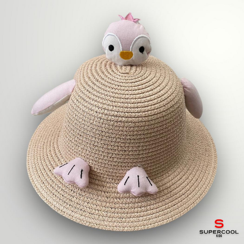 Novinka - cool letná dievčenská súprava zložená zo slameného klobúka a kabelky s tučniakom. Slamený klobúk je zdobený látkovým tučniakom na vrchnej časti s hlavičkou, po bokoch s krídlami a vpredu s nohami. V cene súpravy je cross kabelka so šnúrkou a zatváraním na zips, takisto s tučniakom v rovnakej farebnej kombinácii ako klobúk. Klobúk je vo veľkosti 54 a je vhodný pre dievčatá od 4-7 rokov. Vyrobené zo 100% prírodného papierového vlákna. Súprava je dostupná v troch farebných kombináciách: biela, svetloružová a béžová. Súprava je vhodná na leto, dovolenku, k moru pre všetky cool dievčatká.