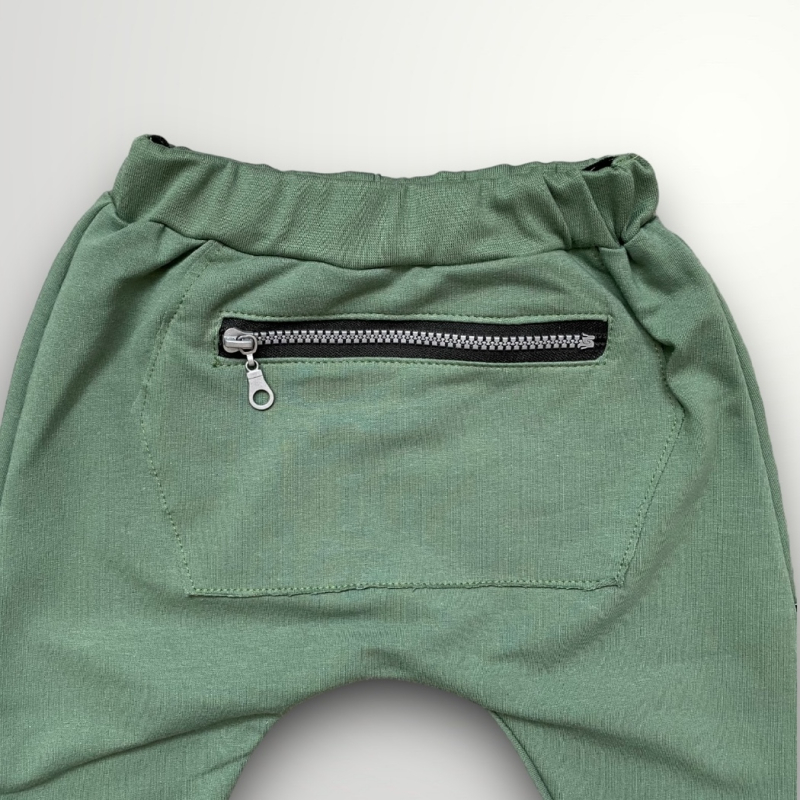 Chlapčenské bavlnené tepláky pudláče so spusteným sedom, predným vreckom na zips, gumou v páse a dole s patentom. Tepláky sú dostupné vo viacerých farbách.