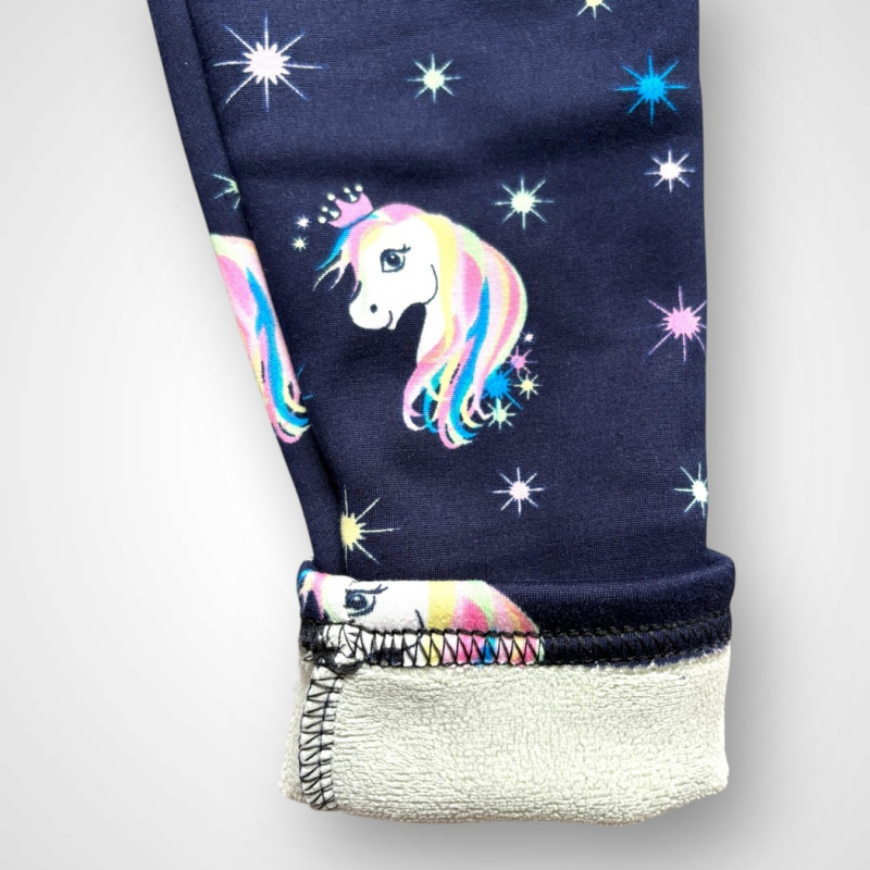 Termo legíny s gumou v páse a potlačou jednorožcov. Dostupné v 2 farbách: tmavomodrá a čierna. Viac informácií ohľadne starostlivosti o oblečenie nájdete v záložke PARAMETRE v časti Starostlivosť.